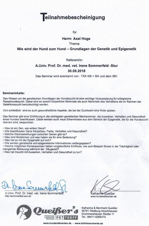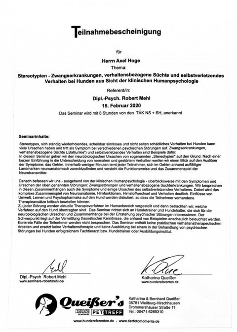 • Lizensierter Problemhundetherapeut S.D.T.S ®