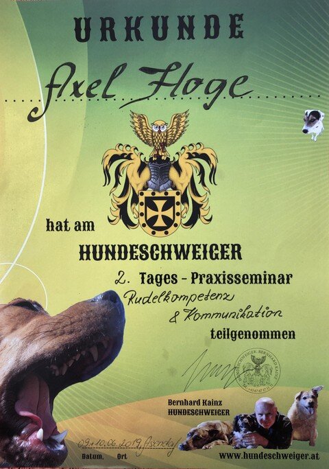 Glücklicherweise lernte ich dadurch auch die "Hundewelten" kennen und absolvierte meine Ausbildung zum Problemhundeberater, Systemhundeberater und zuletzt meinen Problemhundetherapeuten.
